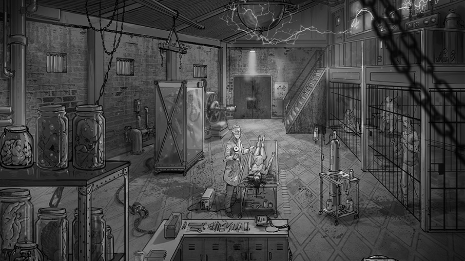 Un importante set con riqueza visual será el gran laboratorio del Dr. Helmut, lugar donde se llevan a cabo horribles experimentos en personas.